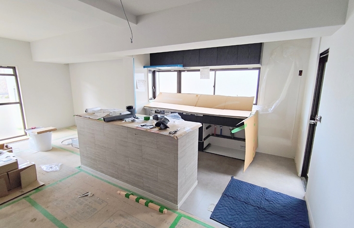 内装工事が完了したら、いよいよ新しいキッチンの組み立てと設置です。